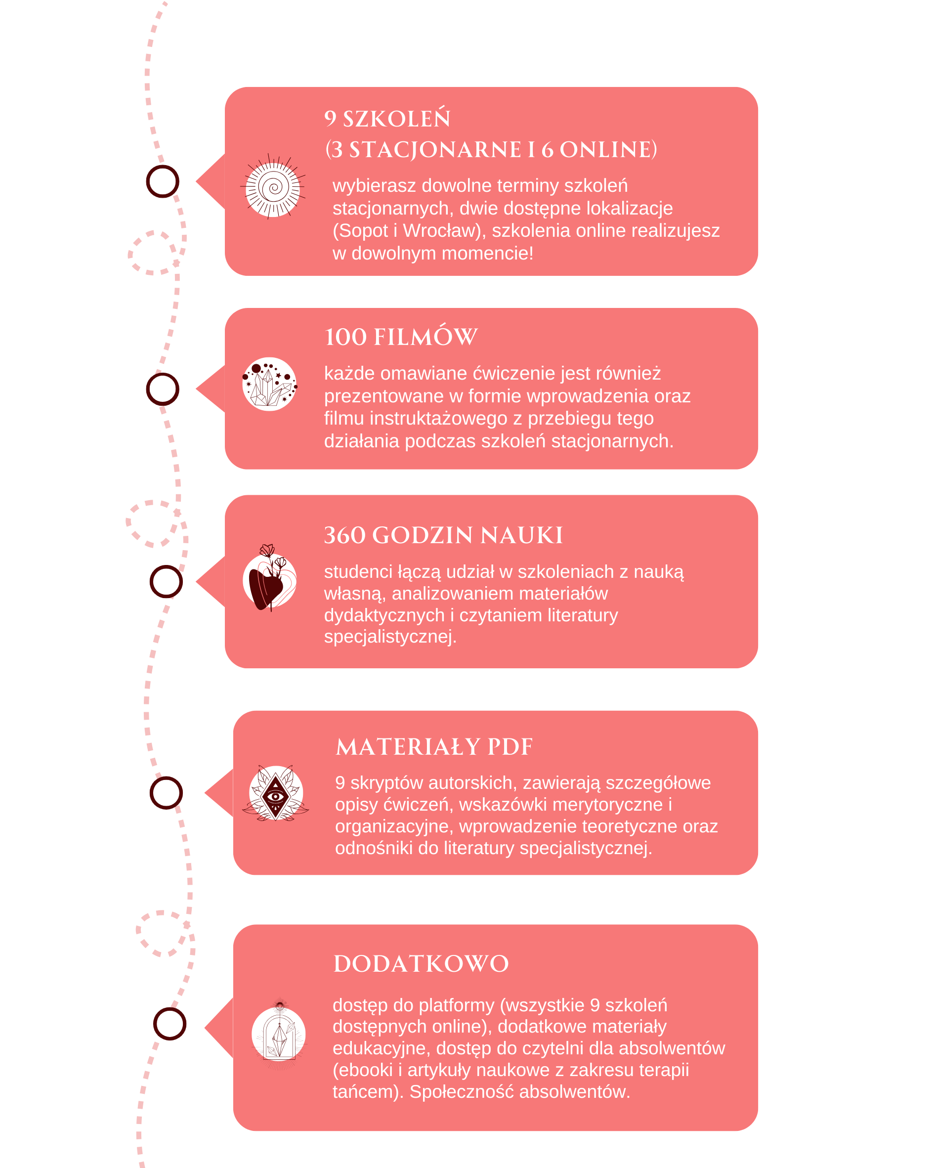 • Dostęp do społeczności kursantów i absolwentów Akademii Choreoterapii i Arteterapii